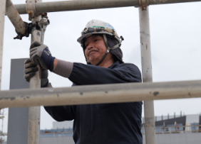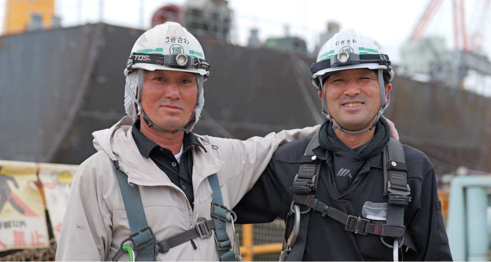 また、関東以北最大規模の造船所である北日本造船の工場において足場組立を行い、造船業を支えています。